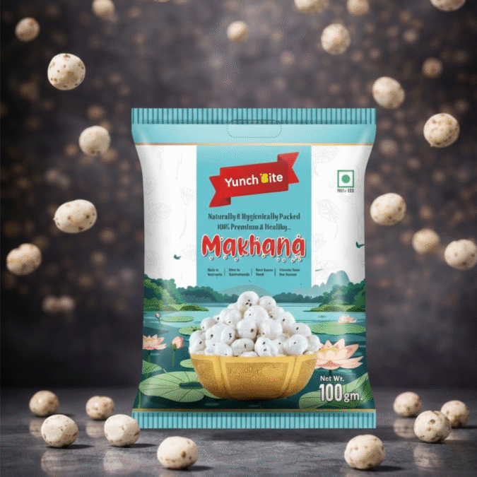 Yunch Bite is a modern food manufacturing brand specializing in Makhana, Popcorn, and Dry Fruits, produced in a hygienic factory environment.